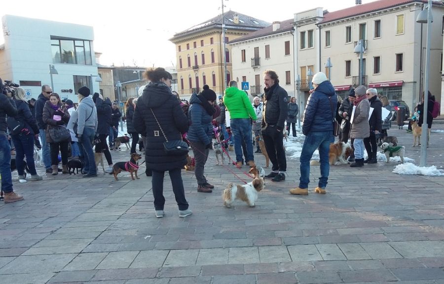 Un centinaio di cani (secondo gli organizzatori) con i rispettivi padroni, più altre persone senza animali al seguito si sono oggi pomeriggio ritrovati in piazza Ferrarin a Thiene per la manifestazione organizzata da Ordine Sociale Altovicentino a cui ha aderito la sezione thienese dell’Enpa, Ente Nazionale Protezione Animali. Il motivo: protestare contro l’amministrazione comunale che ha regolamentato la custodia e la conduzione dei cani sul territorio. Nel corso della manifestazione sono state infatti raccolte firme per chiedere la modifica dell’ordinanza dello scorso 23 dicembre, che si muove sulla stessa linea del regolamento sull’uso dei parchi a aree verdi approvato in ottobre.