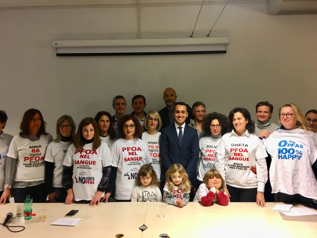 “Gli abbiamo spiegato- raccontano – come è nato il loro gruppo, in seguito all’esito dello screening del sangue dei nostri figli che ci ha destato grande preoccupazioni. La quantità di Pfoa per millilitro di sangue è risultata fino a 40 volte il limite previsto. Da allora abbiamo incontrato varie autorità per capire, chiedere un confronto e delle azioni concrete per risolvere il problema. A Di Maio e al Movimento 5 Stelle abbiamo chiesto che venga sollecitato un tavolo di lavoro tra Ministero dell’ambiente e Regione per trovare un accordo sul finanziamento delle nuove fonti acquedottistiche, la bonifica del sito inquinato ubicato sotto lo stabilimento della Miteni che è stato riconosciuto ancora inquinante, maggiori informazioni sul biomonitoraggio degli alimenti, l’azzeramento dei limiti di sversamento delle sostanze delle industrie chimiche da parte del Ministero. Abbiamo anche chiesto che venga ampliata la zona oggetto di screening e che i fanghi reflui non siano sversati come ammendanti”.