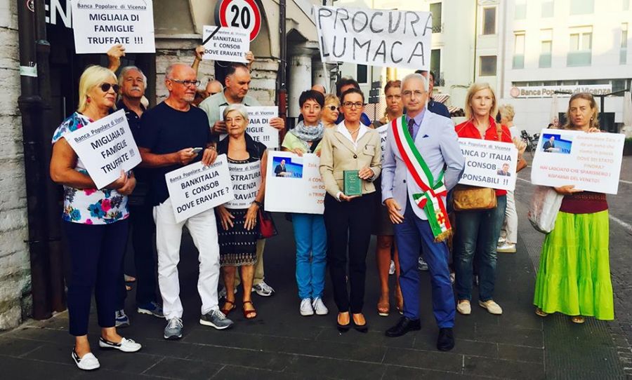 Questa mattina di fronte al Duomo di Schio una trentina di soci che hanno perso i loro risparmi per la crisi della Banca Popolare di Vicenza si sono radunati per un importante appuntamento. Sono stati intervistati in diretta infatti per Rai Tre dalla troupe del programma Agorà, raccontando il loro disagio e l’assenza di risposte dalle istituzioni.