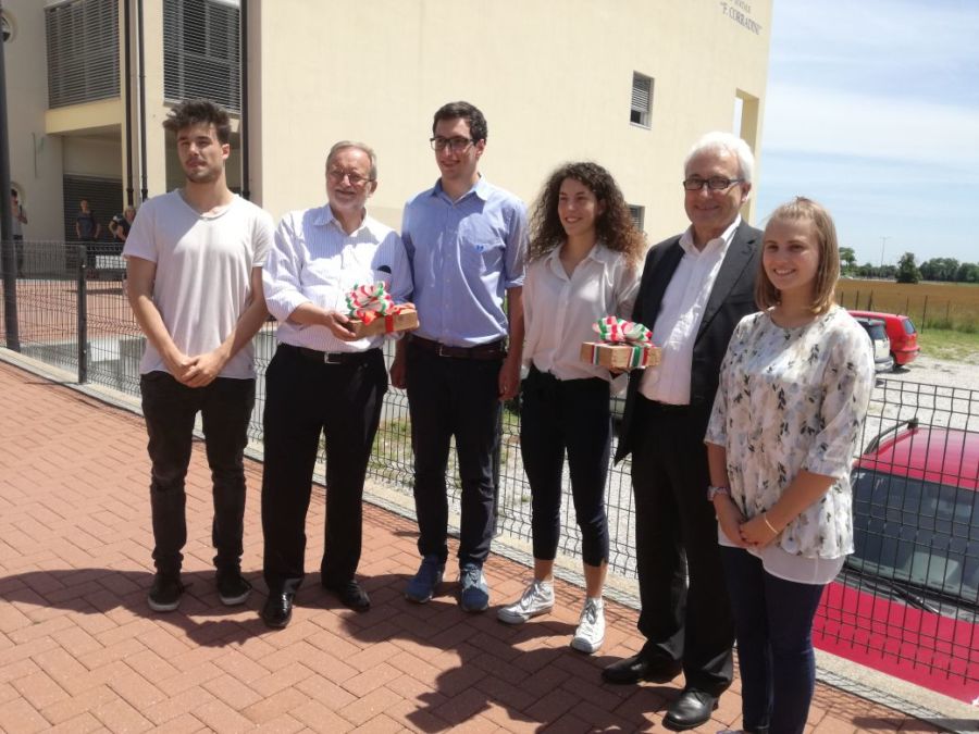 I rappresentanti degli studenti del liceo Corradini insieme a Gianni Casarotto sindaco di Thiene e Ennio tosetto consigliere delegato della Provincia di Vicenza
