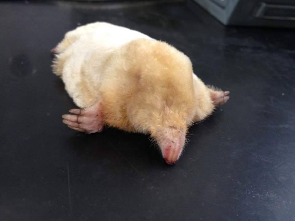 Sfortunatamente l’animale non era più in vita, ma ha fatto specie la vista di una talpa, notoriamente di colore grigio/nero, completamente bianca, o comunque di un colore tendente al bianco/dorato. Si tratta infatti di un caso di talpa albina, dato che non esistono razze di questo animale di colore bianco.