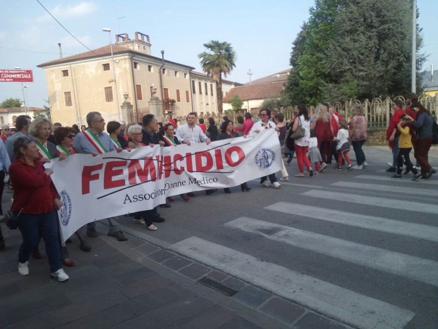 Tra i numerosi amministratori che hanno sfilato nel corteo, l’assessore alla comunità e alle famiglie Isabella Sala di Vicenza, l’assessore alle pari opportunità di Camisano Donatella Frigo, i sindaci Franco Balzi di Santorso (che ha letto nella commozione generale la lunga lista dei nomi e delle età delle donne morte per mano di un uomo), Margherita Corradin di Lusiana, Piera Moro di Marano Vicentino e altri amministratori di Comuni vicentini. Giunti davanti al municipio, i partecipanti hanno formato un enorme cerchio tenendosi per mano in silenzio.