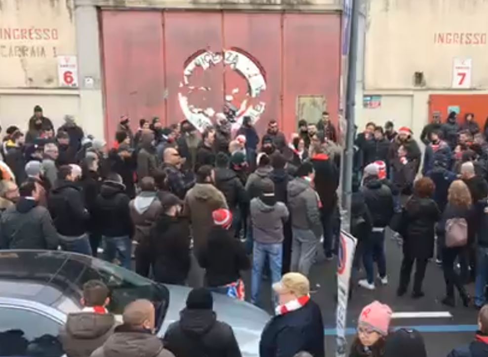 Gli ultras in questo momento sono fuori dai cancelli del Menti e intendono restarci simbolicamente fino alle 15, orario in cui si sarebbe dovuto disputare il match.