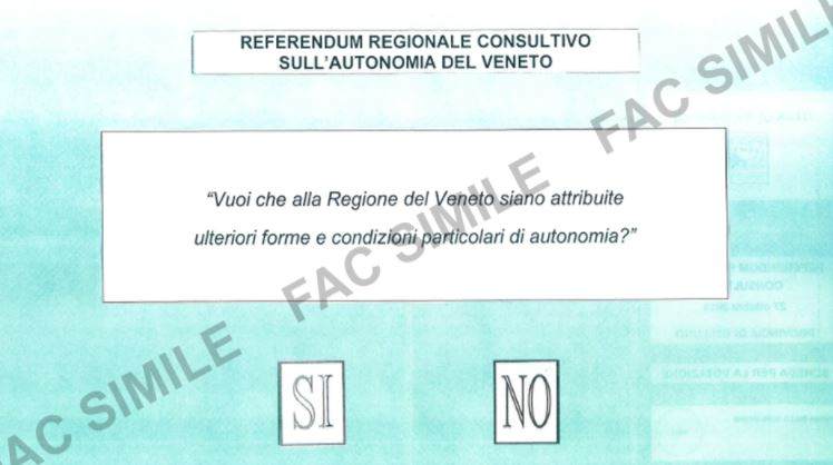 “Vuoi che alla Regione del Veneto siano attribuite ulteriori forme e condizioni particolari di Autonomia?”
