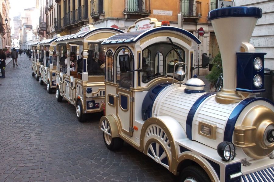 Il trenino elettrico, primo nel suo genere immatricolato a Vicenza, è composto da una motrice e tre vagoni e può trasportare fino a 24 persone. E’ stato realizzato dalla ditta Otec di Pojana Maggiore.