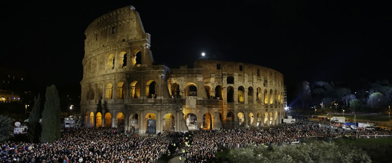 E’ una Roma blindata quella che accoglie il Sabato Santo. Durante la via Crucis l’attenzione di Papa Francesco si è focalizzata sui drammi del mondo, sconvolto dalle guerre, dalla violenza, dalle migrazioni dovute ai conflitti e alla fame. Ad ascoltare le parole del Papa ventimila i fedeli che hanno assistito al tradizionale rito del Venerdì Santo.