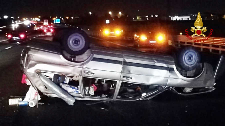 Auto si capovolge di notte lungo l’autostrada A4, tre feriti al casello
