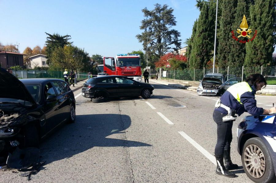Lo scontro è avvenuto attorno alle 12.30, con la dinamica tuttora al vaglio degli investigatori della Polizia Locale. Coinvolte nello scontro tre automobili. Una Citroen C3, una Opel Astra ed una Bmw. I Vigili del Fuoco di Vicenza una volta giunti sul posto hanno estratto dalla Citroen un uomo rimasto incastrato nel sedile posteriore della vettura, mentre la donna alla guida e la bambina nel seggiolone sistemato davanti erano già scese dall’auto. Per quanto riguarda la Opel invece non ha riportato ferite l’autista, mentre la passeggera, una donna di Breganze, è stata presa in cura dai sanitari. Ferito anche il conducente della Bmw.
