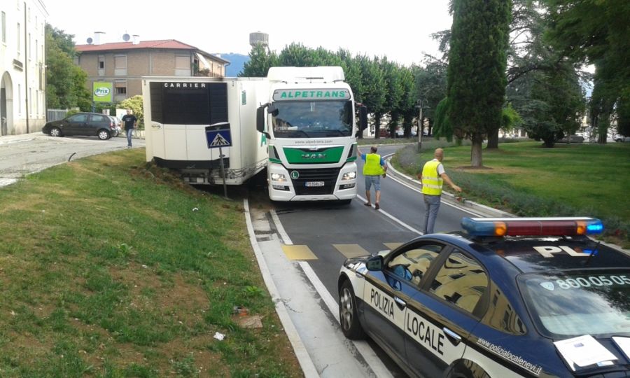 Gli agenti della polizia locale Nord Est Vicentino del distaccamento di Sandrigo, giunti alle 7,30 in via Munari dopo una chiamata che segnalava un incidente a un tir non credevano ai loro occhi: un autoarticolato non solo aveva attraversato piazza de Fabris nonostante il divieto esistente, ma nell’imboccare la semicurva di via Munari, aveva perso il semirimorchio, che aveva finito la sua corsa nel terrapieno presente lungo il margine della strada. L’autista, il 44enne bulgaro T.M.D. si era evidentemente dimenticato di agganciare il semirimorchio.