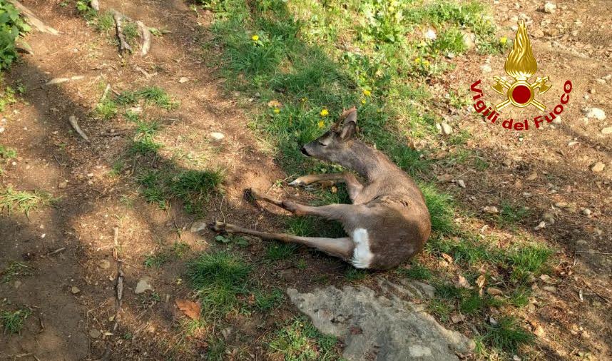 Capriolo in un canale. Messo in salvo