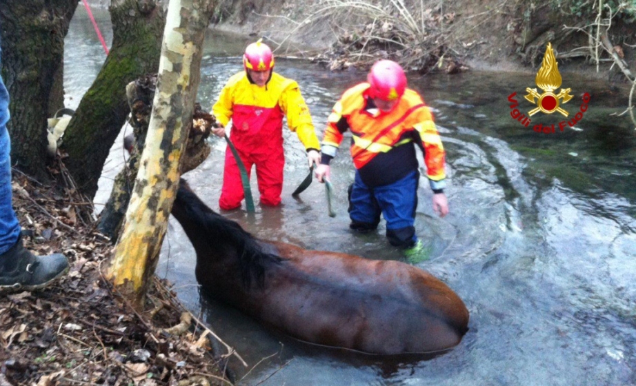Un cavallo è stato salvato dai vigili del fuoco ieri pomeriggio a Lupia di Sandrigo.