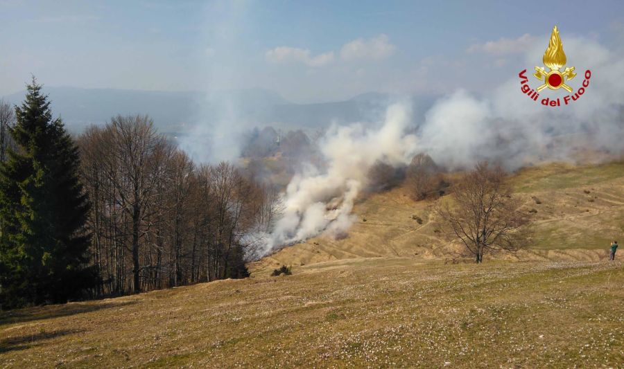 I vigili del fuoco sono intervenuti ieri attorno alle 14 per un incendio di sterpaglie in Val forbice ad Asiago.