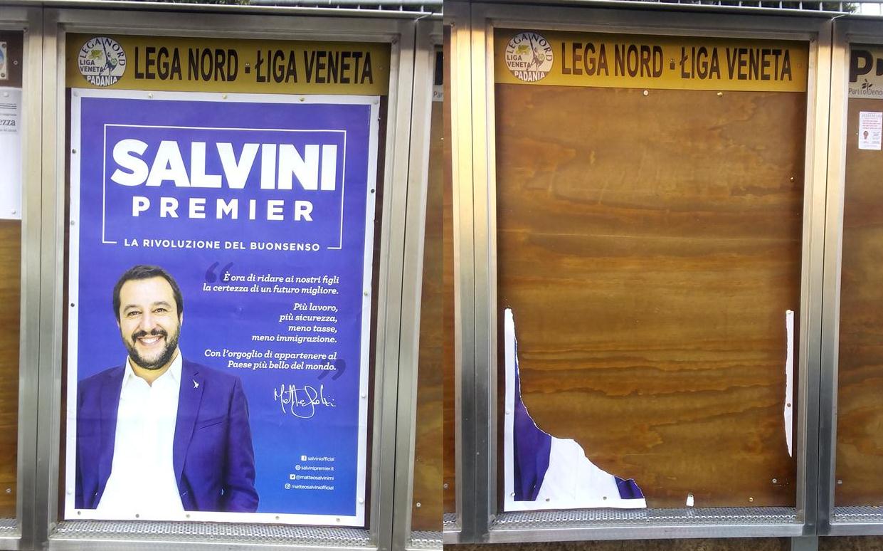 Manifesti pro-Salvini strappati, la Lega si appella al Comune