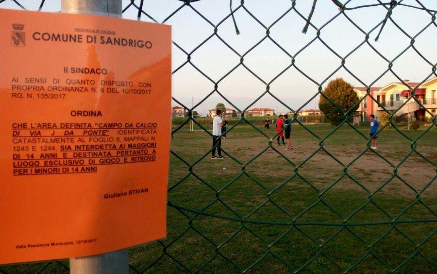 Centoventi partecipanti alla partita “vietata”, fra spettatori e giocatori (una ventina). E’ la protesta, pacifica e ironica, andata in scena domenica pomeriggio a Sandrigo in via Da Ponte, nel campetto da calcio che dal 10 ottobre scorso è stato proibito a chi ha più di 14 anni.