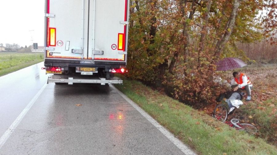 Per cause ancora in corso di accertamento da parte della polizia locale, forse a causa della pioggia battente, B.P. ha perso il controllo della bicicletta, in sella alla quale stava percorrendo via Villa, finendo dentro al fossato che la costeggia.