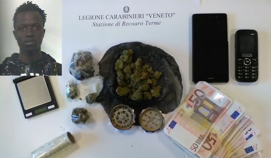 I carabinieri della stazione di Recoaro Terme hanno arrestato ieri sera per spaccio Singhateh Kebba, 24enne del Gambia. L’uomo è stato colto in flagrante a Novale mentre vendeva 5 grammi di marijuana ad un 20enne, e a seguito di ulteriori controlli è stato posto agli arresti domiciliari.