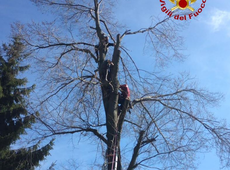 Restano impigliati su un albero di 15 metri. In due salvati dai vigili del fuoco