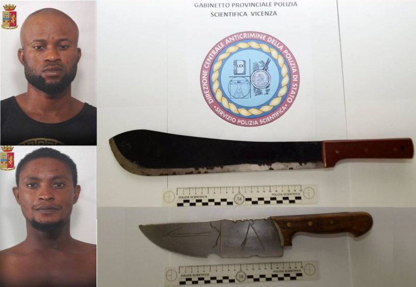 Gli ultimi fatti di cronaca sembrano mettere in evidenza uno spostamento dei regolamenti di conti fra bande di nigeriani nella zona ovest della città di Vicenza. Si erano infatti dati appuntamento in una zona appartata alla periferia Ovest della città, ma l’incontro fra una decina di stranieri è degenerato in lite, anche con l’utilizzo di coltelli. Il fatto è avvenuto ieri mattina: la rissa è stata segnalata alla polizia da alcuni automobilisti in transito. Sul posto sono quindi sopraggiunte alcune volanti, alla cui vista le persone coinvolte hanno tentato di darsi alla fuga. Tre di questi però son stati prontamente bloccati dai poliziotti. Due di loro, successivamente identificati come cittadini nigeriani, hanno cercato di disfarsi di un grosso coltello e di un machete che avevano nascosto sotto i vestiti, ma il loro gesto non è sfuggito agli agenti, che hanno recuperato le armi abbandonate tra la vegetazione.