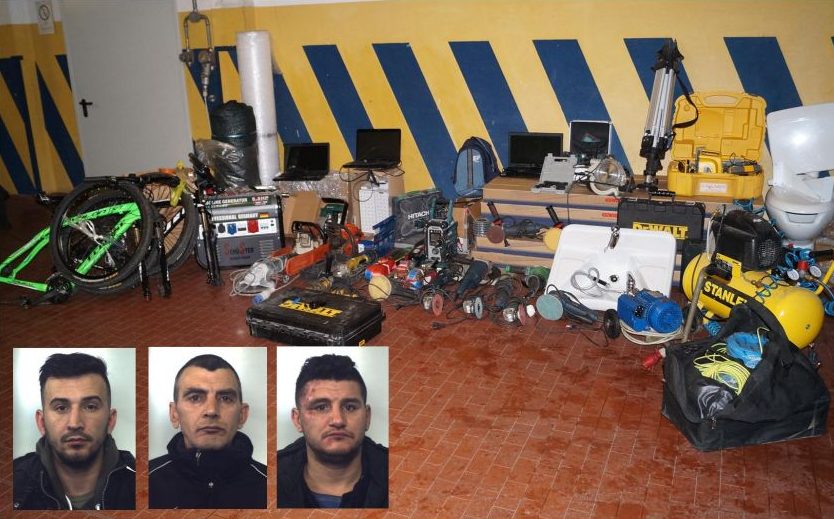 All’interno del garage i militari hanno trovato, insieme alla refurtiva della notte, materiale di ogni genere (dalle biciclette ai computer, da un generatore di corrente a sanitari) per un valore di almeno 60 mila euro, materiale che sarà ora restituito ai rispettivi proprietari, così come i veicoli rubati.
