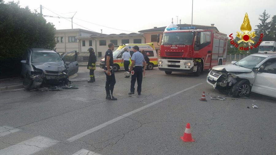 Grave incidente alle 18.20 a Longa di Schiavon in via del Borghetto: due vetture si sono scontrate frontalmente causando cinque feriti. I vigili del fuoco di Bassano, intervenuti sul posto, hanno messo in sicurezza i mezzi ed estratto una donna rimasta incastrata nell’abitacolo di una Opel Astra. La donna, gravemente ferita, è stata presa in cura dal personale del Suem 118, così come altre quattro persone uscite autonomamente dalle auto.