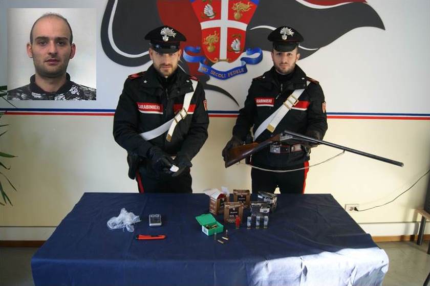 Considerato il comportamento atipico, i carabinieri hanno deciso di fermarlo e controllarlo in modo approfondito: non è servito molto per trovare un contenitore nascosto sotto il sedile del passeggero, dove era stato nascosto un involucro contenente circa 10,5 grammi di cocaina, ancora in “sasso” e quindi da tagliare per la successiva vendita, oltre a vari ritagli di cellophane pronti per il confezionamento delle dosi. Le perquisizioni, eseguite sia nella sua abitazione che nella trattoria-pizzeria, hanno consentito di rinvenire anche un bilancino di precisione. I militari hanno anche rinvenuto una doppietta di fabbricazione artigianale detenuta illecitamente, insieme a oltre cento cartucce da caccia e una ventina di cartucce calibro 38 special. Milo è stato quindi arrestato per i reati di detenzione ai fini di spaccio di stupefacenti e per illecita detenzione di armi e munizioni.