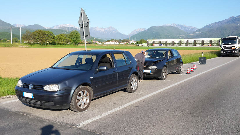 Tamponamento a catena in località Ponte d’Oro, a Schio: tutto inizia da un’auto che svolta a sinistra per fare una segnalazione alla polizia municipale. E’ successo stamattina alle 7.55. Una signora a bordo di una Ford Focus proveniente da Schio e diretta a San Vito ha messo la freccia per svoltare a sinistra, nel parcheggio sterrato dove in quel momento era presente una pattuglia dei vigili, con cui voleva parlare. Purtroppo, dietro di lei c’era chi andava troppo forte, o forse si è distratto proprio nel momento della manovra. La macchina successiva, una Volkswagen Golf condotta da un trentenne di Torrebelvicino, ha rallentato, mentre la terza, una Alfa Romeo 147 condotta da un 21enne di origini bengalesi non è riuscita a fermarsi in tempo. L’auto ha tamponato la Golf, che a sua volta ha colpito la Focus. Tutto sotto gli occhi dei vigili: fortunatamente gli urti non hanno avuto gravi conseguenze, a parte bloccare temporaneamente la viabilità dell’area. Il conducente della Golf, con un forte dolore al collo e giramenti di testa, è stato prontamente soccorso da una ambulanza del 118 e trasportato al Pronto soccorso dell’ospedale di Santorso. La regolazione del traffico e i rilievi sono stati effettuati da una pattuglia del Consorzio di Polizia Locale “Alto Vicentino” di Schio.