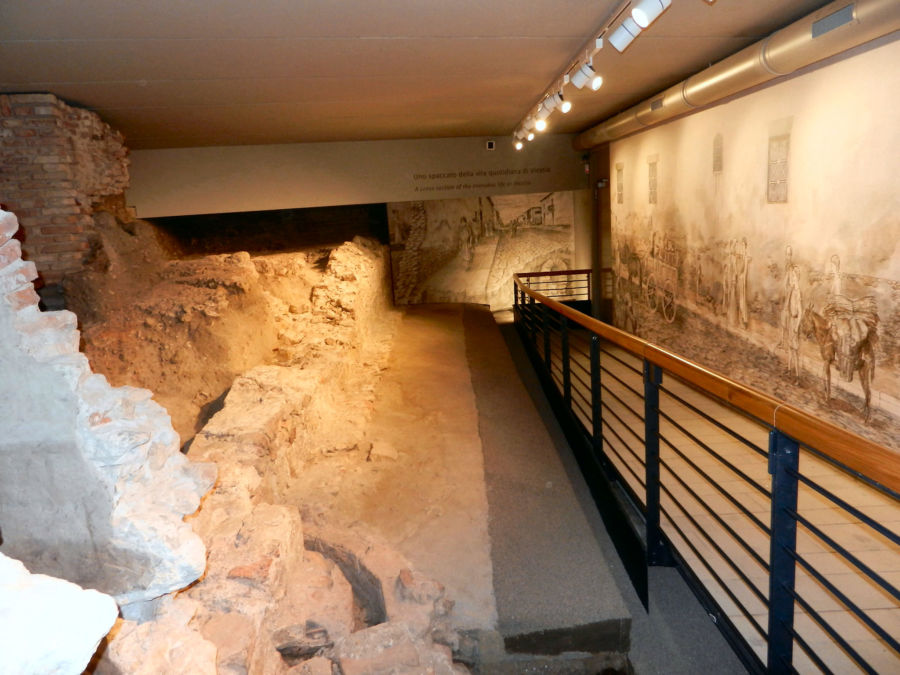 L’area archeologica ha un’estensione di 150 metri quadrati ed è dotata di passerella da cui si possono vedere reperti con inserti a pavimento in vetro trasparente che permettono di apprezzare quanto rimane della strada romana. Il percorso è arricchito da un apparato didattico essenziale articolato in titoli, sottotitoli e didascalie, anche in lingua inglese.