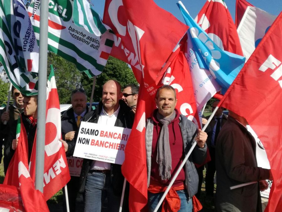 I sindacati fuori a protestare contro i paventati esuberi e la riduzione degli stipendi e i soci dentro a votare il bilancio del 2016, chiuso a meno 1,9 miliardi di euro. Ma, oltre a quanto era prevedibile, l’assemblea della Banca Popolare di Vicenza tenutasi ieri in Fiera ha riservato anche qualche sorpresa e nuove indicazioni sul futuro (anche di Veneto Banca).