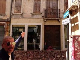 Crolla un cornicione in centro e quattro persone rimangono leggermente ferite. Si è sfiorata la tragedia questo pomeriggio intorno alle tre in via Matteotti...