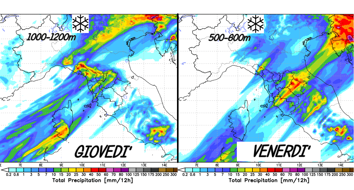 La mattina saremo ancora interessati da fenomeni con intesità tra il debole e il moderato con quota neve in calo sui 500m. Le precipitazioni cesseranno a metà giornata lasciando 15/20cm a 1000m e 30/45cm oltre i 1300m. Temperature in lento ma graduale calo a tutte le quote per correnti fredde dal nord Europa.