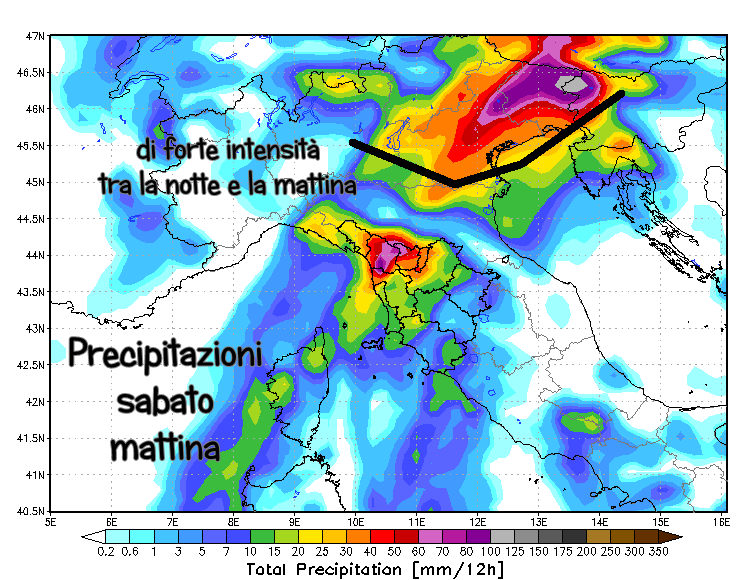 Inizialmente avremo ancora tempo perturbato, specie nella prima parte della mattina dove si vedranno piogge anche di moderata/forte intensità. Nevicherà oltre i 1800m. I fenomeni si esauriranno verso metà giornata. Attesi altri 20-35mm in pianura, 30-40mm in montagna. Possibili parziali schiarite la sera. Temperature in lieve calo solo in quota.