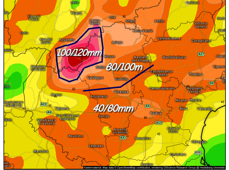 Dopo una mattinata poco nuvolosa, vedremo un rapido peggioramento a partire da sud nel corso del pomeriggio. Rovesci diffusi la sera, specie su medio/alto vicentino.