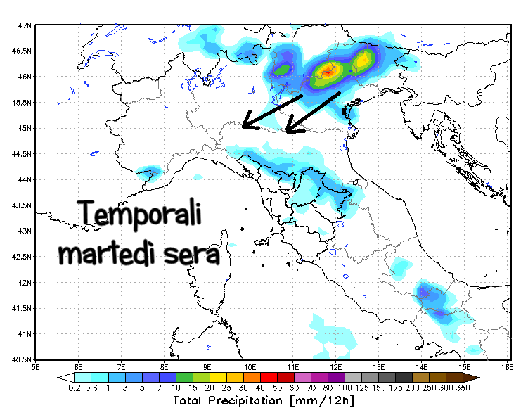 Da sereno a poco nuvoloso la mattina. Nel pomeriggio aumento delle nubi e dell’attività cumuliforme. Sulle prealpi nel tardo pomeriggio si attiveranno rovesci e temporali che durante la sera si espanderanno su gran parte del medio/alto vicentino da nord est verso sud ovest. Localmente i fenomeni potrebbero risultare forti con punte di 30/40mm di pioggia, generalemnte sul vicentino cadranno dai 10 ai 20mm. Estremi termici in pianura tra 13 e 23°C. Zero termico a 2800m.