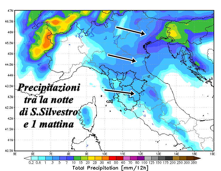 Tempo brutto nella prima mattinata del nuovo anno. Non saranno comunque precipitazioni persistenti e il passaggio perturbato risulterà rapido con schiarite già in serata. Dal 2 al 6 gennaio al momento i modelli matematici mostrano una alternanza di rapidi peggioramenti e schiarite.