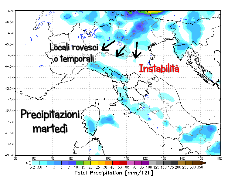 La mattina da poco a parzialmente nuvoloso con probabili rovesci lungo la fascia prealpina. Nel pomeriggio andrà aumentando l’instabilità, si faranno via via più diffusi rovesci e temporali che dalle prealpi scenderanno verso sera anche sulle pianure. Insistendo sul Vicentino occidentale fino alla notte. Quota neve 1800m circa. Temperature in calo nei valori massimi di 3-4°C