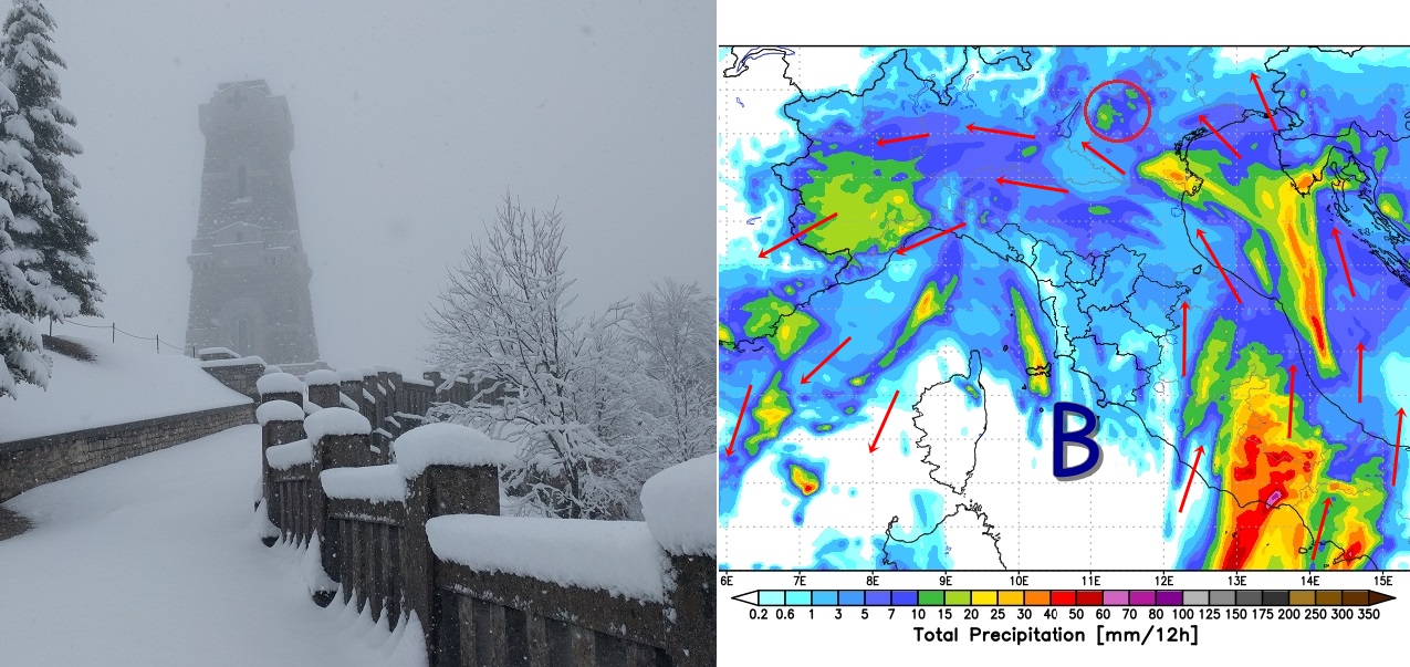 Dopo una nottata di precipitazioni persistenti, vedremo gli ultimi fenomeni in mattinata con quota neve in rialzo sui 900m. A fine evento saranno caduti 15/25mm di pioggia in pianura e altrettanti cm di neve in montagna oltre i 1000m.