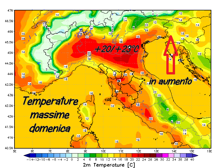 Soleggiato con clima tardo primaverile. Punte massime di 23-24°C